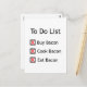 A bacon "to do" list with the three primary goals, Buy Bacon, Cook Bacon and Eat Bacon.