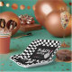 Celebrate your little girl's second trip around the sun with this Bad 2 the Bone 2nd birthday party paper plate. Designed in classic black and white checkerboard, hot pink and a skeleton hand making a peace sign, this table setting is perfect for highlighting your wild ride through the terrible twos. Personalize it with your event details for a party that will be two good to be true!