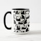 This hand drawn pattern is a compilation of furry black felines knocking various things over - coffee mugs, succulents, TV remotes and vases of flowers. A funny pattern for those who love their cats, even though they are sometimes jerks who knock stuff over.