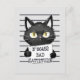 Add some humour to your day with this 'Bad Cattitude' postcard! Featuring a mugshot of a mischievous black cat holding a sign with the words 'Bad Cattitude,' this playful artwork is perfect for cat lovers who appreciate a little sass and feline charm. A great gift for anyone who adores cats with personality and wit.