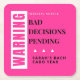 — Bold warning label design matches the full Bad Decisions Pending collection