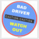 Bad Driver Sign - Blue Caution Watch Out label - A caution bad driver sticker is a type of bumper sticker that is used to warn other drivers of the poor driving skills of the person who owns the vehicle. Some people may use it as a joke, a prank, or a way to express their frustration with their own or someone else’s driving. Others may use it as a serious warning or a plea for patience from other drivers.