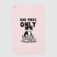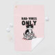 Channel your edgy and sassy side with this striking golf towel featuring a fierce cat surrounded by skulls. The bold phrase 'Bad Vibes Only' adds a rebellious twist, perfect for cat lovers who embrace a dark, gothic aesthetic. This unique design is ideal for those who love combining feline charm with bold, statement-making art.