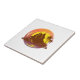 Badge with tropical volcano scenery and palm trees ceramic tile