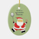 Creative badminton Christmas holiday gift featuring Santa Claus badminton player cartoon. To personalize edit text to add his or her name.