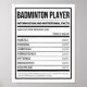 Badminton Player Information And Nutritional Facts Poster