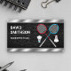 Elegant sports theme business card featuring a black damask background and brushed steel accents with modern typography. Add your name and contact details to make a lasting first impression.