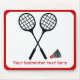 Badminton gifts, racquet and shuttlecock mouse pad that features a minimalist black icon of two badminton racquets, a shuttle and a red border around. The perfect gift ideas for the badminton player or lover.