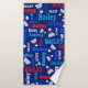 Sporty badminton shuttles on a dark blue court background originally designed text name personalised blanket. This typographical racket sports-themed patterned towel set has red, blue, and white text and can be customised with your own name, currently reads Bailey. Contact me for longer name requests. Original art and design by www.mylittleeden.com