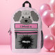 This Bag Buddy cute poodle dog backpack is perfect for any child or adult that likes a little fun. Light pink background featuring a cute poodle puppy dog with a sign that tells the world who he belongs to. Personalised with a name or initials on the front pocket, and perfect for books, school work, toys, clothes, sports gear, travel, or anything you need to carry. This fun and playful custom design is a part of the 'Bag Buddy' series. Great gift idea for birthday or any special occasion.
