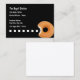 Bagel shop and bakery theme business cards designed with loyalty check boxes template you can use to promote repeat customer business. A simple editable template you can customise online and displays a partially eaten bagel graphic that looks like a bite has been taken out of it.