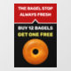 Best promotional window cling decal template for a Bagel shop, bakery, or Sidewalk Cafe designed with in a large vertical format with graphic of a bagel and easy to read large lettering you can customise and alter online to suit your promotion needs in a budget friendly design. Supply one to every store location for seasonal or all year round advertising.