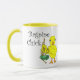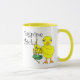 Bagpipe chick in curly text with a yellow chick holding bagpipes is a humourous gift design for pipe musicians and Celtic music lovers.