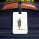 Luggage tag featuring a watercolor painting of a bagpiper in full kilt walking down a beach. Available with either a print on both sides, or a print on one side with id card envelope on the other. Artwork: Watercolor and graphite on pencil. Copyright Dominic A. White. All rights reserved.
