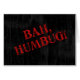 A classic, un-merry holiday sentiment "bah humbug". Red text on a grungy background. A funny design for a Christmas grouch.