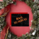 A classic, un-merry holiday sentiment "bah humbug". Red text on a grungy background. A funny design for a Christmas grouch.