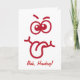 This funny Christmas Card features a funny face, cross-eyed with tongue out, and a "Bah, Humbug!" greeting on the front of the card and "Whatever" on the inside. Both greetings can be customised, so you can add your own funny caption. Red design on a white xmas card.