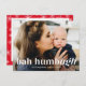 Show exactly what you think of the year with our funny Bah Humbug/Bah Humbugh photo holiday postcard. The funny Christmas postcard features your photo on the front with "Bah Humbugh" in a white, modern font overlay with your name and the year below.The back of the postcard displays your return address & custom message with a red and white snowflake pattern background. Designed to coordinate with our Bah Humbug Ugh Funny Christmas card collection.