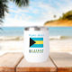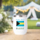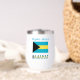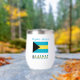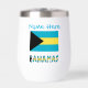 Personalised thermal wine tumbler features the Bahamian Flag and the word BAHAMAS underneath. Above, add your name, in blue letters, for a personalised touch or cool gift. Fun to use at family reunions, travel groups, and clubs. Great for Mum or Dad as a Mother's Day or Father's Day gift.