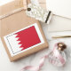 The Bahraini nationa flag has two vertical bands in white and red, which are divided by a serrated line with five points representing the five pillars of Islam. It was adopted in 1920, and has a 3:5 ratio.
