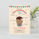 This cute invitation is ideal to celebrate a birthday with a bake or cupcake theme. It features a cupcake separated by parts with labels on each one. A pennant decorates the top. Colourful and playful invitation for a hands-on birthday party.