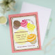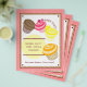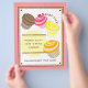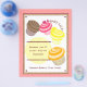 A bake sale flyer featuring an illustration of four cupcakes; chocolate, raspberry, lemon, and orange. Personalise with details of your event.