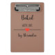 Modern chocolate brown baking clipboard with a black script initial and name. Personalise with your name, initial and text.