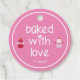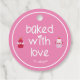 NewParkLane - Cute, personalised Favour Tags, featuring two pink and red strawberry shortcakes. With text frame 'Baked with love" in a sweet typography with hearts. A fun design for all your homemade baking products, like pies, cupcakes and more. Add your own name for a personalised design in the easy-to-use text template.