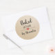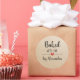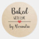 Modern "baked with love" sticker with a black font on a cardboard background embellished by a cute red heart. Customise text.