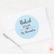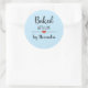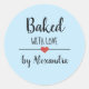 Baked with love light blue script name classic round sticker