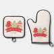 This oven mitt set is perfect for holiday baking. The design features a collection of festive Christmas cookies with text that says "Baked with love." You can personalise with your name. Coordinates with the Christmas Cookie Exchange collection.