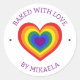 Baked With Love Rainbow Heart Custom Name Classic Round Sticker
