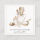 An modern and whimsical baker, bakery or pastry chef business card featuring a watercolor painting of bakers tools and ingredients. Personalise your name in a modern script signature type. Add your contact information and social media information to the back of the card. A trending illustrative style artisan business card for your dessert catering or bakery store business.