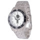 Has heft and feel of expensive stainless steel quartz watches. Good band with safety catch. I removed links, which is easy because engraved arrows show direction to push the linking pins. As always by this seller, the image (a railroad logo) is a perfect reproduction of my emailed image, and is precisely spaced and aligned.
