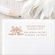 Baker pastry chef return address labels, featuring classic baking utensils with a cake on a pedestal stand at the centre, including a whisk, rolling pin, piping bag, wooden spoon, and wheat sprigs. The warm copper toned line art and balanced layout create an artisan look that reflects the craft of baking and pastry making. A professional, artisan style choice for bakers, pastry chefs, cake makers, dessert caterers, and home bakery businesses who want a card that reflects handmade baking and attention to detail. Ideal for meeting customers at cake tastings, farmers markets, pop up bakeries, dessert tables, food fairs, and speciality baking events. This version features softly rounded corners for a refined boutique presentation. Prefer a classic square edge? A standard corner version is also available.