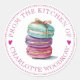 Pretty watercolor "from the kitchen of", featuring whisk, macaron cookies, round food labels, with classic decorative open face typography. Just add your name. An eye catching style for your baked goods. You may use the simple design tool to change font style and colour of fonts.