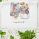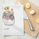 A personalised whimsical hand sketched glass sugar jar, flour, egg, and measuring spoons, illustration for a baker's kitchen towel. Time to cook. A great gift for a the creative cook in your family!