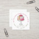 An elegant whimsical watercolor cake bakery pastry chef business card with a coloured type in the round logo in pinks and greens and a cute composition of bakers tools and utensils surrounded by a floral. with modern script signature type. The typography is in pastel hues and adds a touch of elegance. Add a pretty product label to your baked goods packaging.