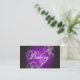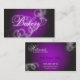 To perfectly align your text, press "CUSTOMIZE IT" under the image, click on the newly loaded image of the business card to go to design view. Use the text boxes on your right to highlight the text that you want to edit, then use the arrows to move it or click on the lettering on the image of your design and click and drag your mouse to move it. If you require assistance, please contact pamsdesigns@live.ca. ©2012 Pam's Designs. This elegant, professional, and stylish purple, black and white glowing smoky monogram script lettering with swirled floral flourishes and sparkle over a spotlight bakery business card provides a classy, professional look for your bakery business. This elegant monogram business card is can be personalised to meet your business needs. If you would like to see your business name written with this fancy script font, please contact us at pamsdesigns@live.ca.