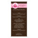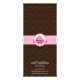 © 2011 Socialite Designs. Gourmet cupcake design with a ribbon and lace banner. The background design has a damask pattern in dark chocolate and cocoa. Customise the elegant cupcake bakery rack card for your business.
