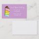 A cute vintage retro style business card suitable for a bakery or cake making business. This whimsical design shows delicious looking rainbow cake slice original watercolor art illustration against a modern lavendar purple background. The background colour can be changed to suit your taste. This business card is fully customisable to include your own personal details.