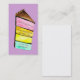 A cute vintage retro style business card suitable for a bakery or cake making business. This whimsical design shows delicious looking rainbow cake slice original watercolor art illustration against a modern lavendar purple background. The background colour can be changed to suit your taste. This business card is fully customisable to include your own personal details.