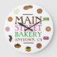 Clock design features an original marker illustration of an assortment of delicious fresh-baked cookies including gingersnaps, macarons, Italian rainbow, chocolate chip, sugar cookies, and more. Just personalise with your bakery information.