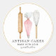 This whimsical cute watercolor cake bakery pastry chef business product label features a baker's tools; rolling pin, piping bag and whisk. Simple tools of the trade! Your name signature in script typography and the name of your business, with the tagline: made with love. To see the full collection of this design with matching materials: https://www.zazzle.com/collections/baker_pastry_chef_tools_of_the_trade-119577579838035644.