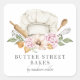 Modern and whimsical watercolor bakery pastry chef product labels, with a cute watercolor bakers hat and tools and a blush pink watercolor wash background. Personalise your name in a modern script signature type.
