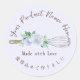 This elegant round sticker features a watercolor whisk nestled in soft lavender and white blooms, a delicate and heartfelt label for any handmade baked good. Add your product name and seal up cookies, pastries, or confections with charm.