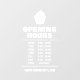 Bakery shop business opening hours Window Cling sign (not a sticker). Static non adhesive Window Cling for door or window. Custom open and closed days info for customers, clients, visitors, guests etc. Add your own am to pm open times. Face outwards or inwards, printed on one side. Cupcake logo icon. Also useful for any other business. Just upload your own logo, company name, website address and other info. White or custom colour text. Great for candy shop, restaurants, cafe too.