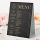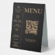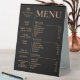 This bold modern tent style menu would be an eye-catcher in any bakery, pastry shop or small coffee shop. Printed on both sides so you only need one for a table. It includes a space for your brand image, three product and price sections, opening hours and additional section for other business information + QR code on the back.