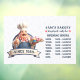 A charming 3D cartoon illustration of a friendly, portly pastry chef with a cheerful smile and a well-groomed moustache. He is dressed in a professional white chef's hat (toque), a vibrant red-and-white striped neckerchief, and blue denim overalls over a white shirt. The chef gives an enthusiastic thumbs-up while balancing a silver tray filled with colourful treats, including frosted cupcakes and glazed doughnuts. The character is framed by a circular backdrop and a large, elegant blank banner at the bottom, designed for custom text or branding. The high-quality CGI style and warm aesthetic make it an ideal mascot for a bakery or confectionery.