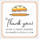 Cottage Food Home Bakery Thank You For Your Order Sticker... If you're starting a new home-based food business, our bakery start-up kits are designed to save you time by offering business products that you'll need for establishing yourself as a professional in your field during the hectic days of a business launch. Our Cottage Food Home Bakery Thank You Sticker displays a ready-made logo of a home-made loaf of bread above a rolling pin in the same burnt orange colour palette. The words "Thank You!" in friendly script typography, followed by your business name and website URL are placed just beneath the logo. The example text can be easily replaced with your own details on the personalisation template. Part of our Home Bakery Cottage Food Business Kit which also includes business cards, fridge magnets, tote bags, logo t-shirts, cottage law labels with wording you can revise as required by your own state.